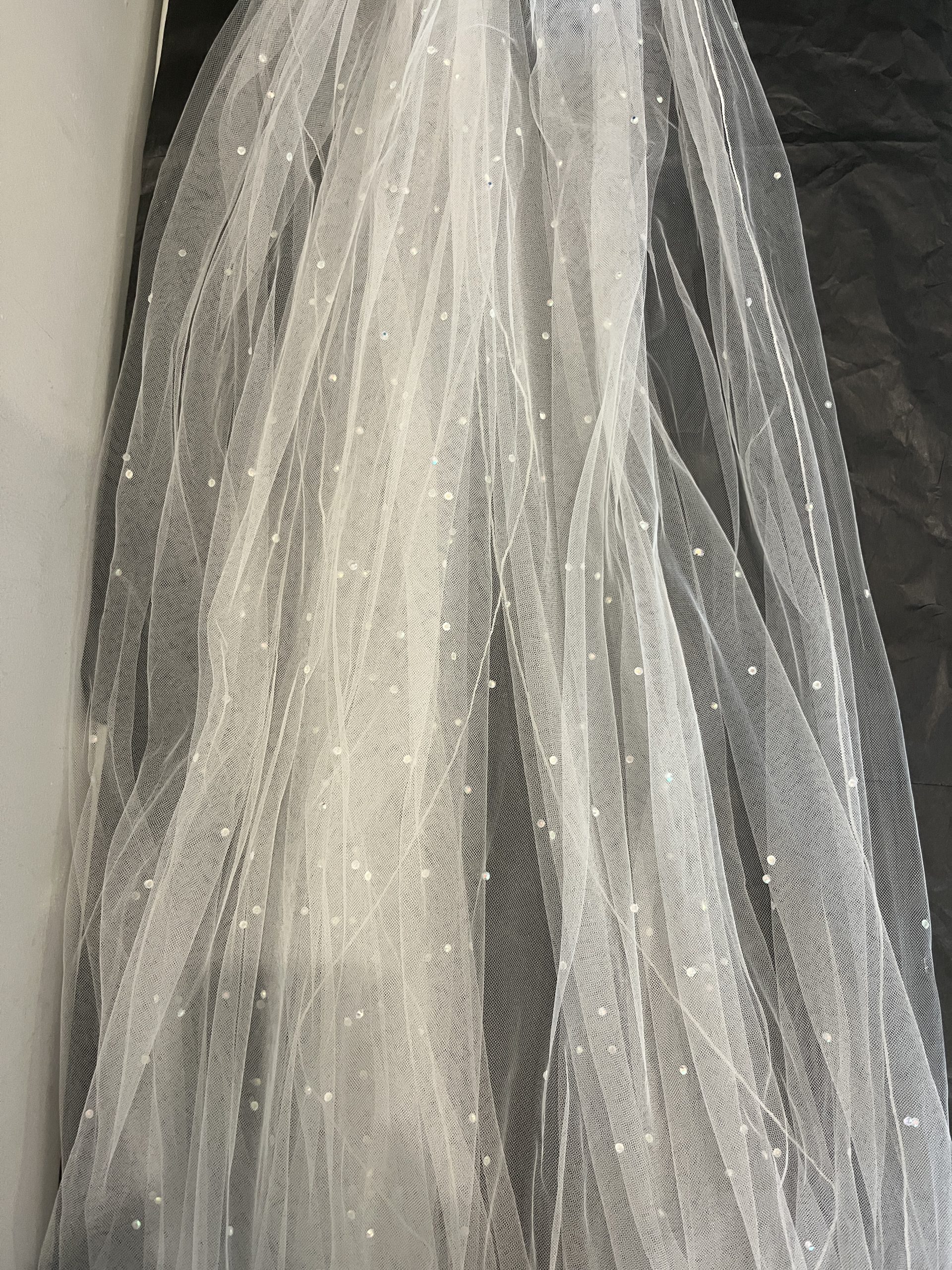 Elegant white crystal tulle veil