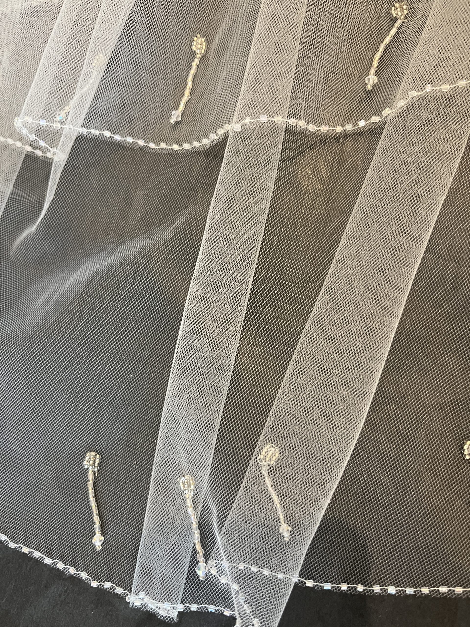Beautiful short tulle 2 tier ivory delicate diamond beading