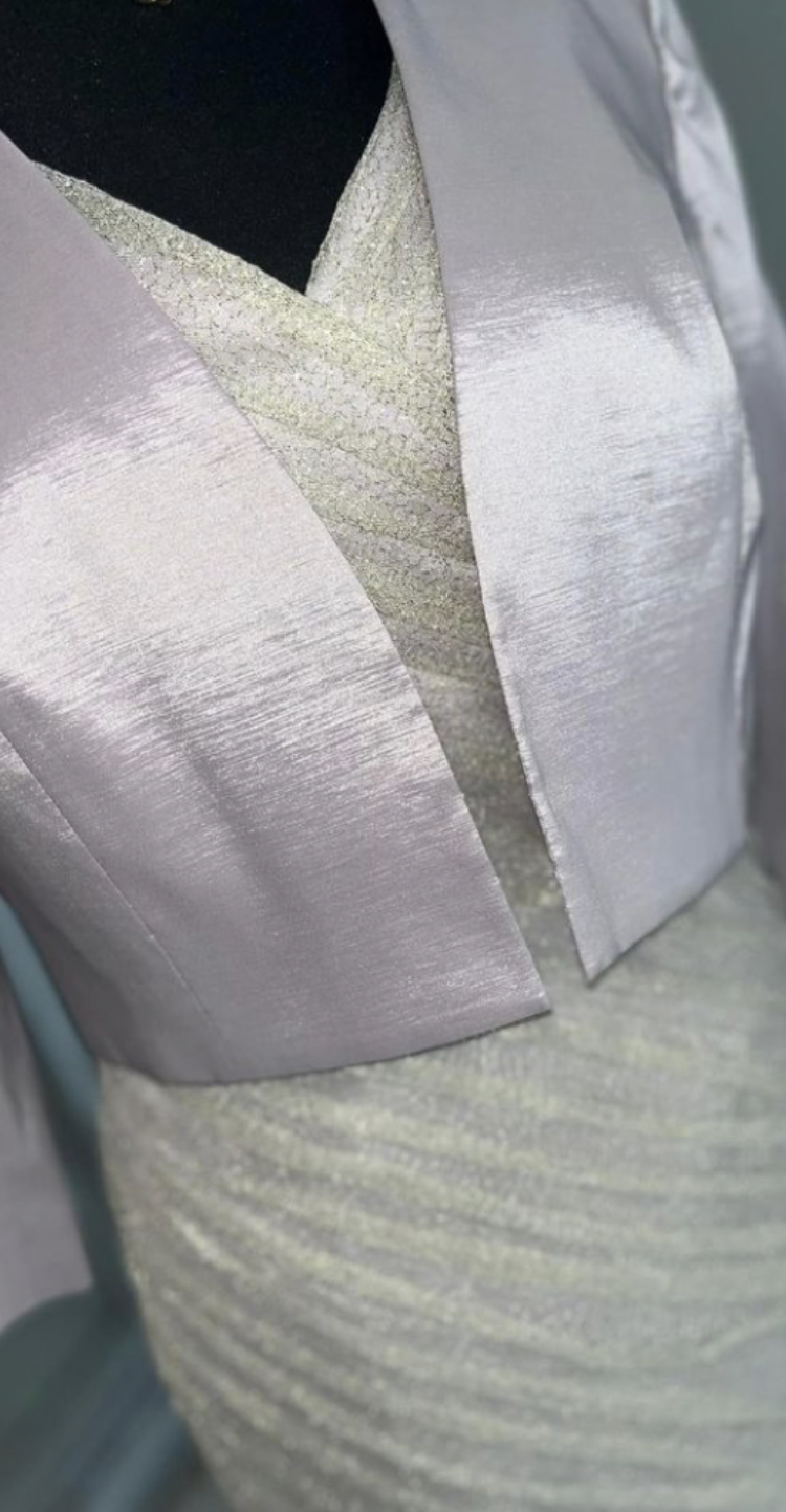 Elegant lilac and ivory with gold thread through dress two piece outfit