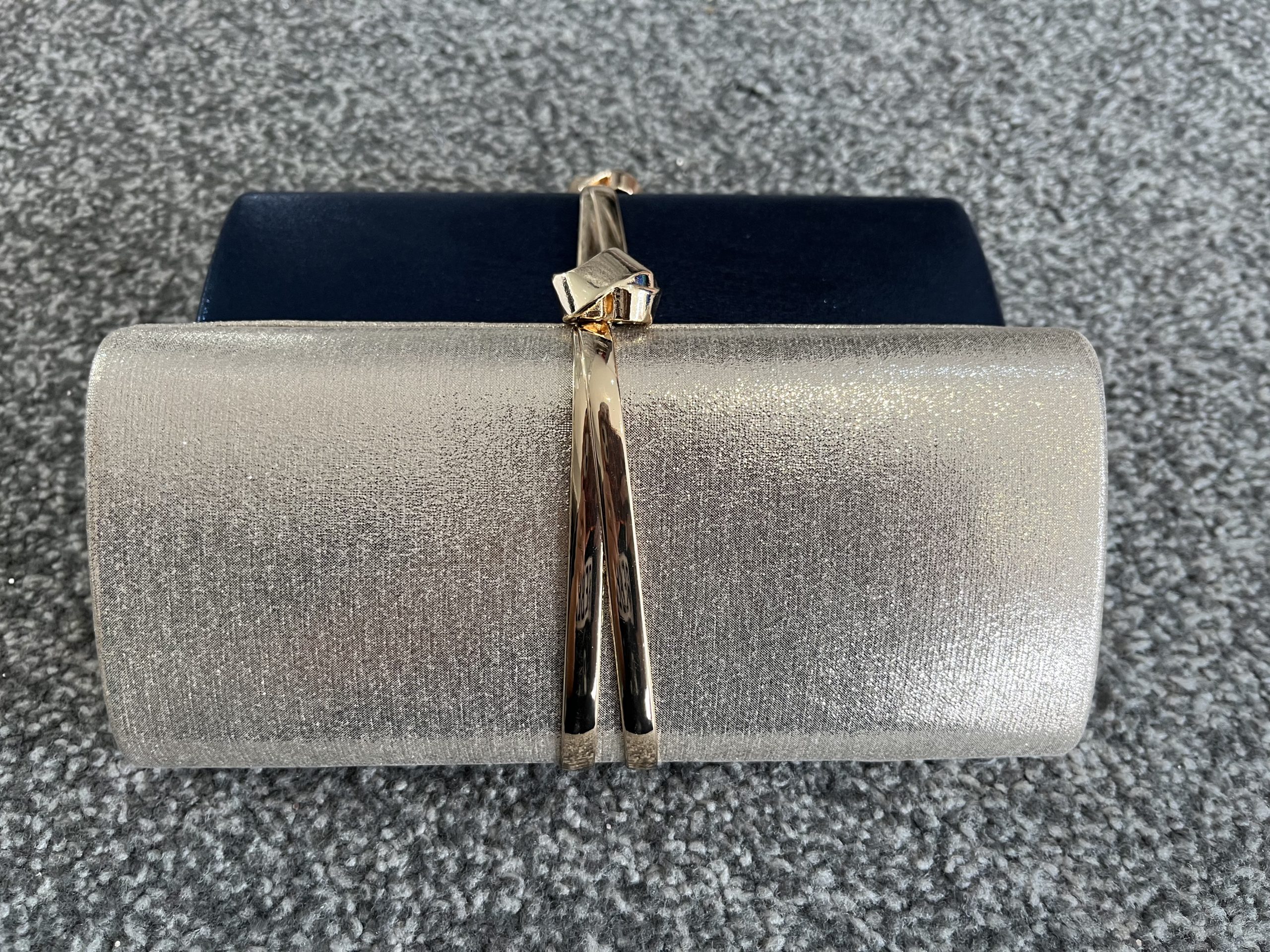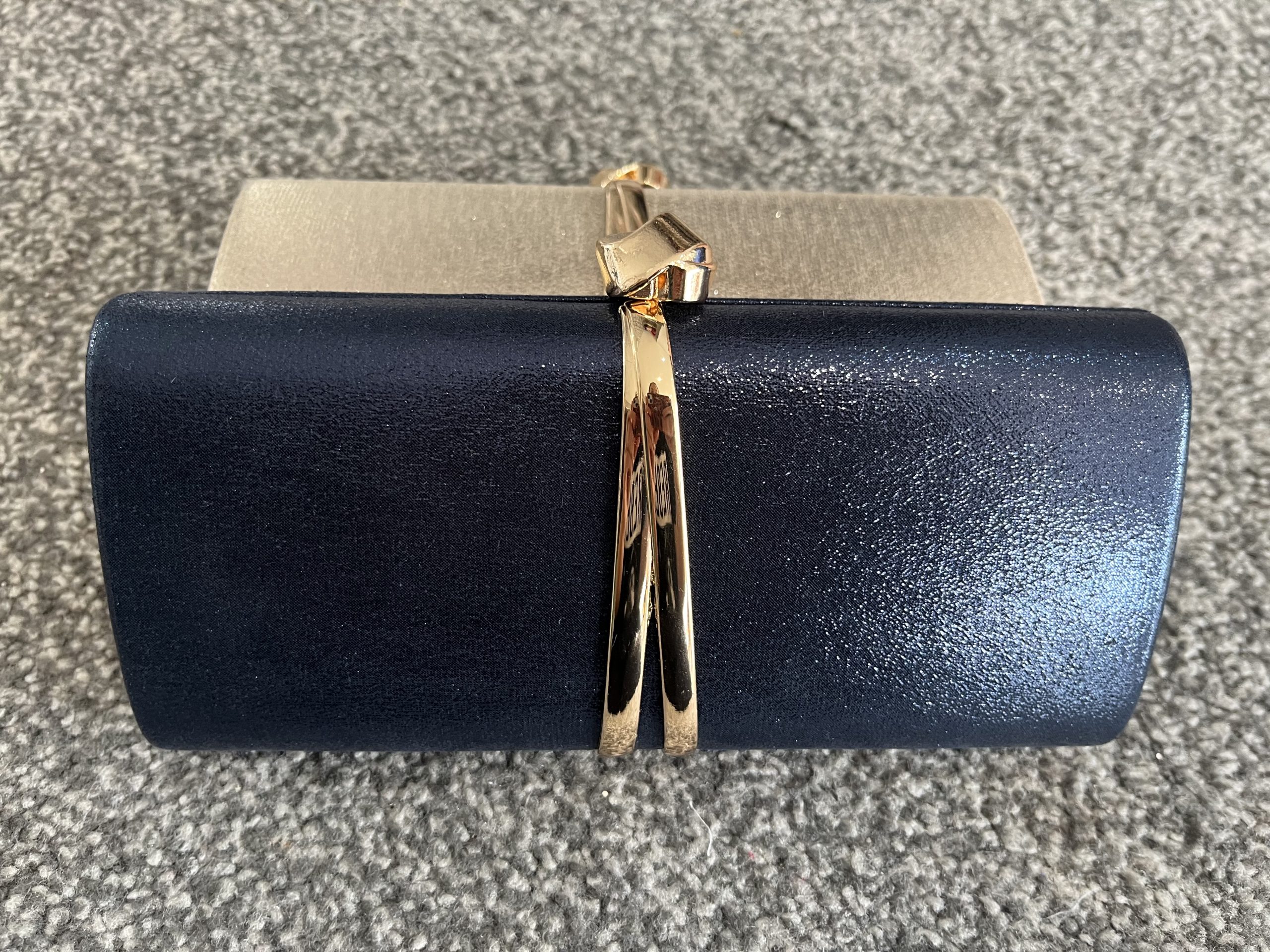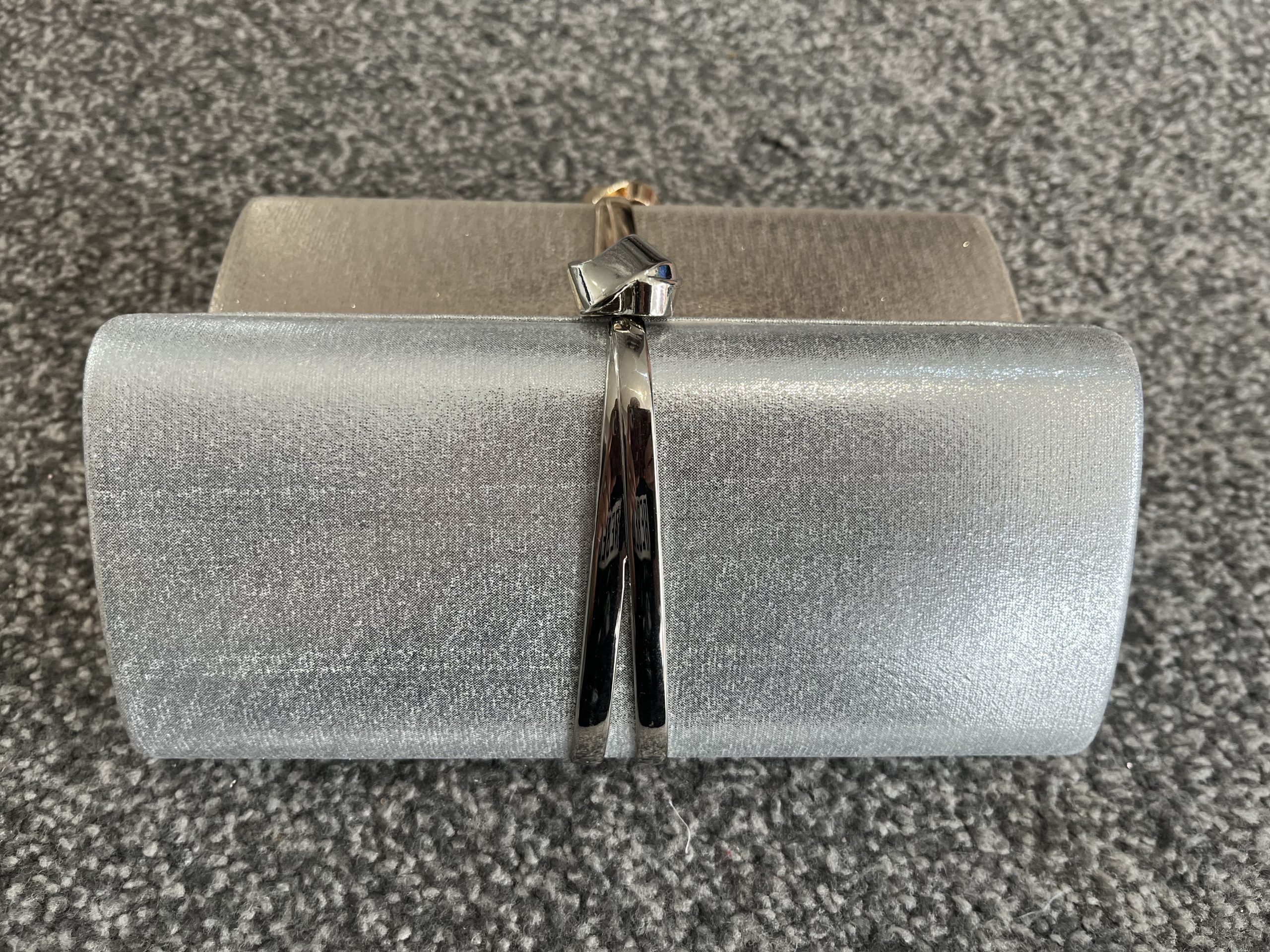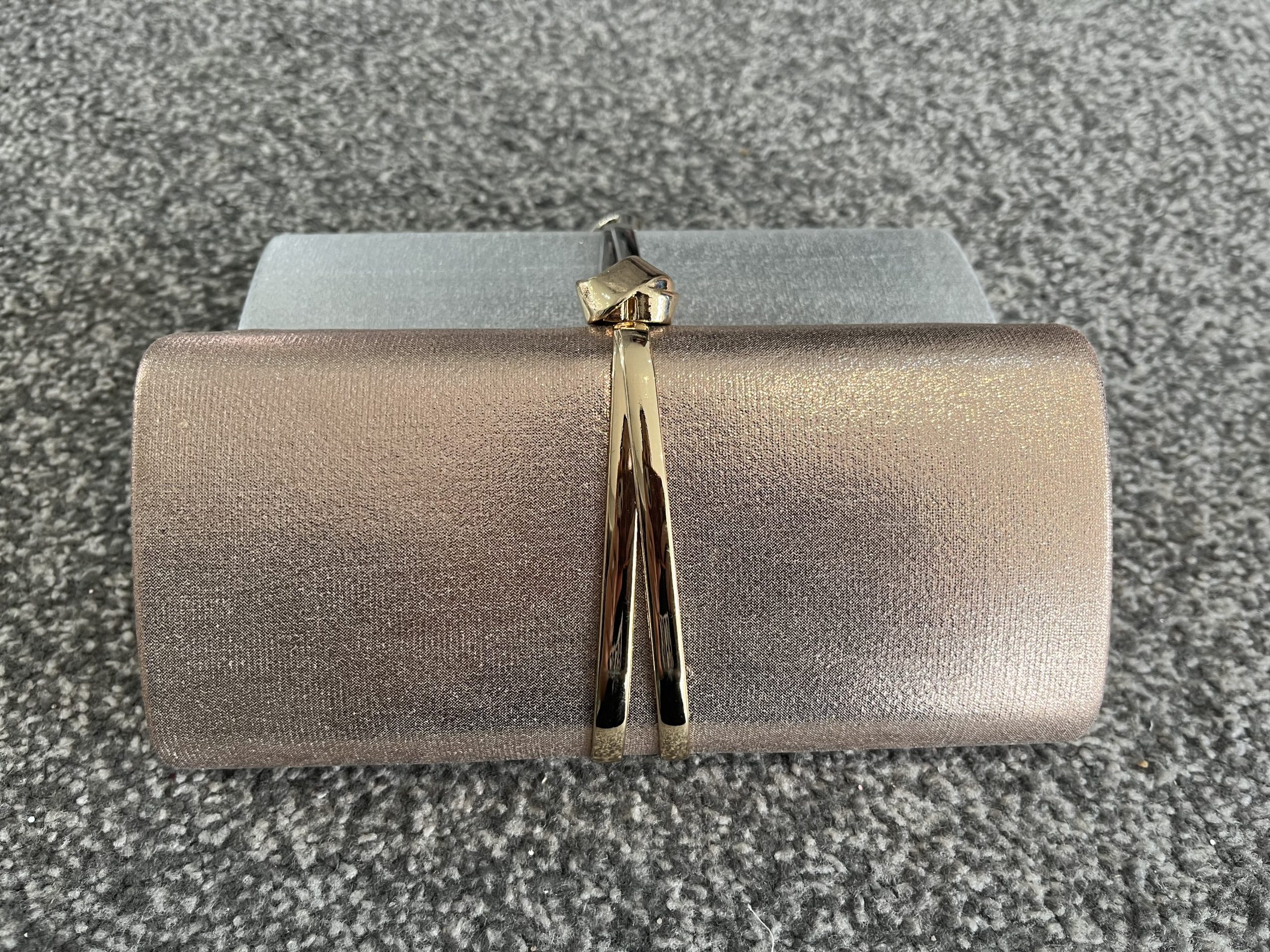 Knot detail clutch bag with long chain strap included.